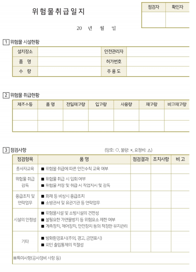 별첨2. 위험물취급일지