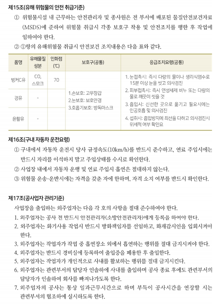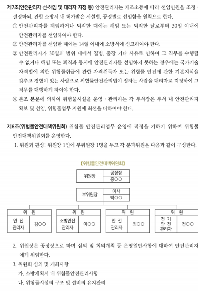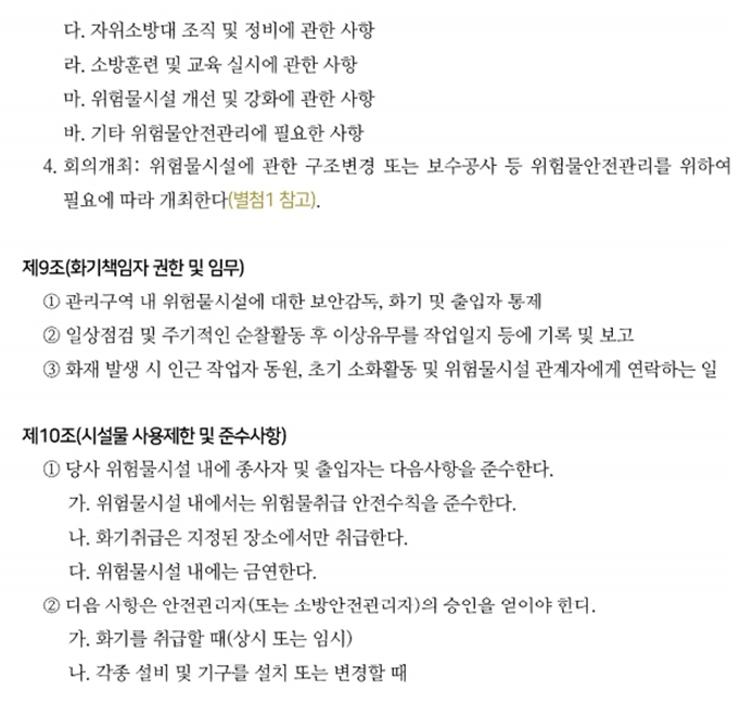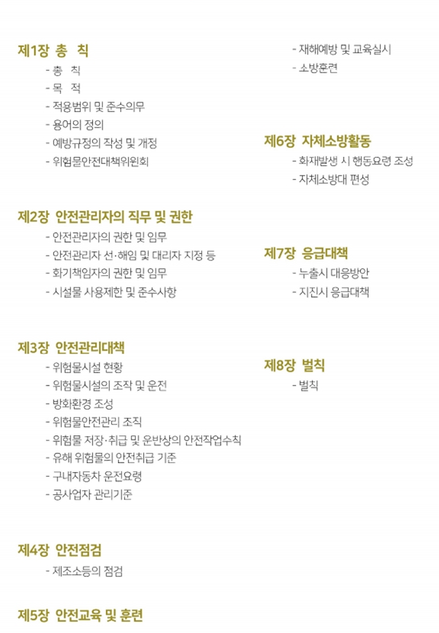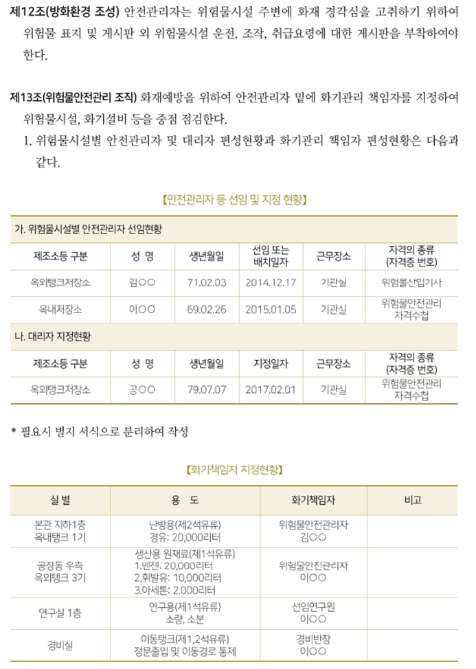 위험물 예방규정 작성에 관한 별도 법정양식은 없지만, 한국소방안전원에서 예시한 양식을 소개해 드립니다.
