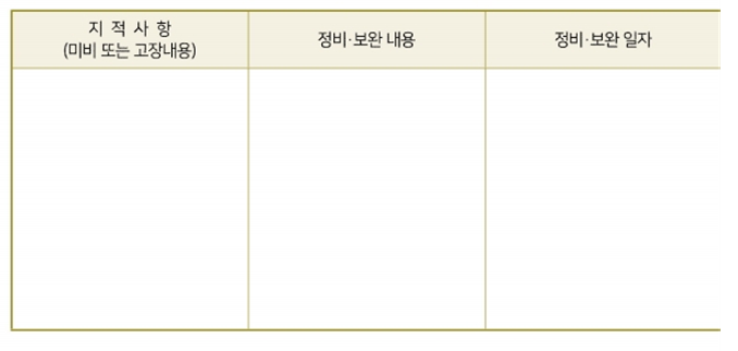 별첨7. 위험물 및 소방시설 정비, 보완 기록부