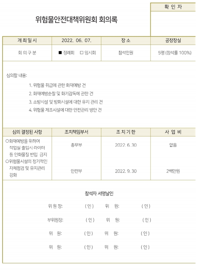 별첨1. 위험물안전대책위원회 회의록