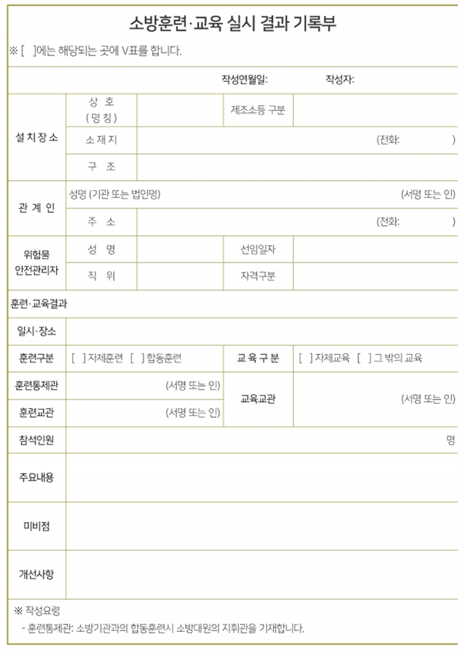 별첨5. 소방훈련, 교육 실시 결과 기록부